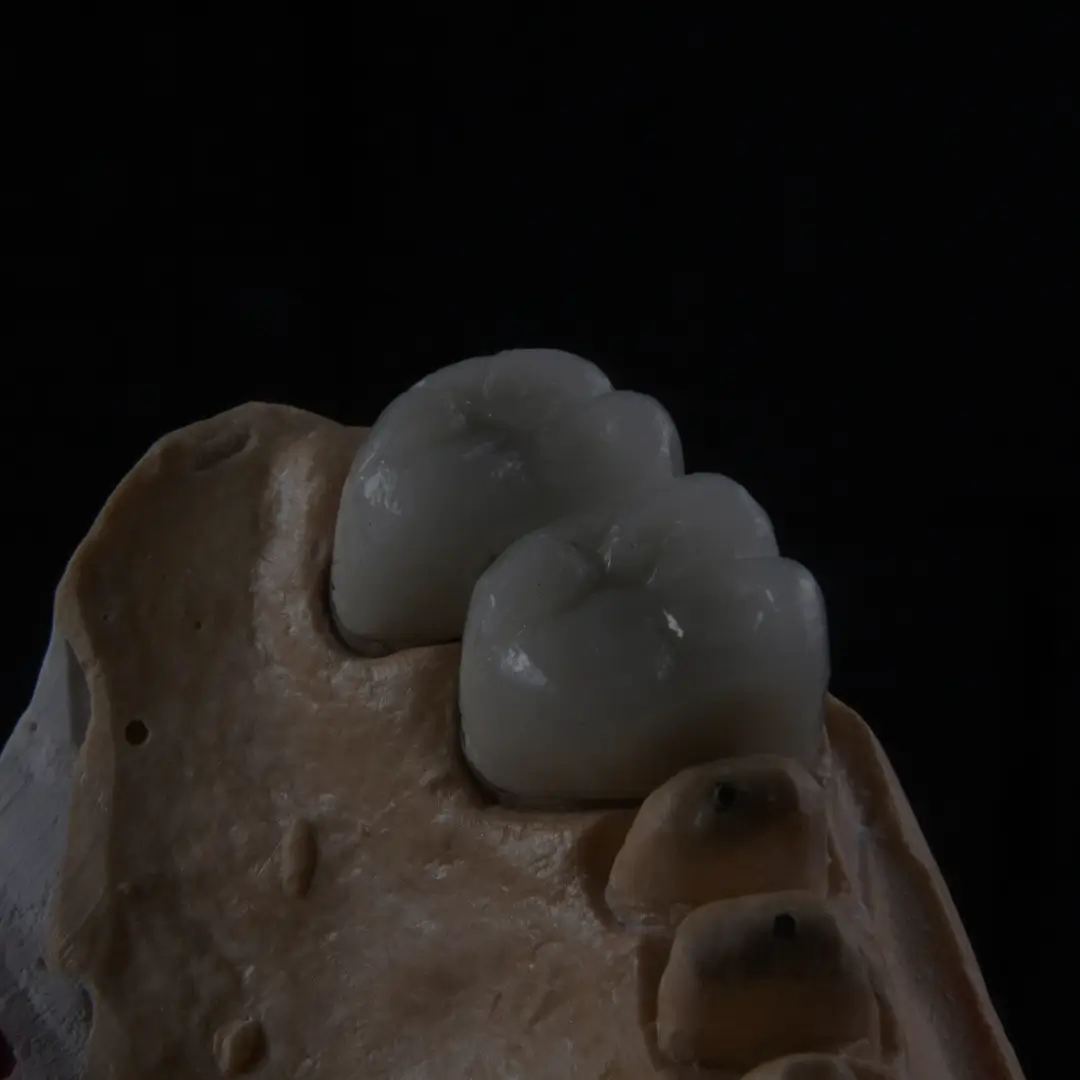 Un “pont” de couronnes solidaires qui remplace une dent manquante en s’appuyant sur les dents voisines pour une solution fixe et naturelle.